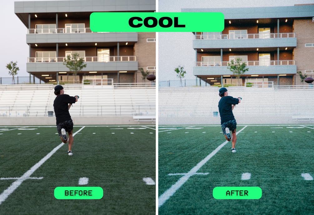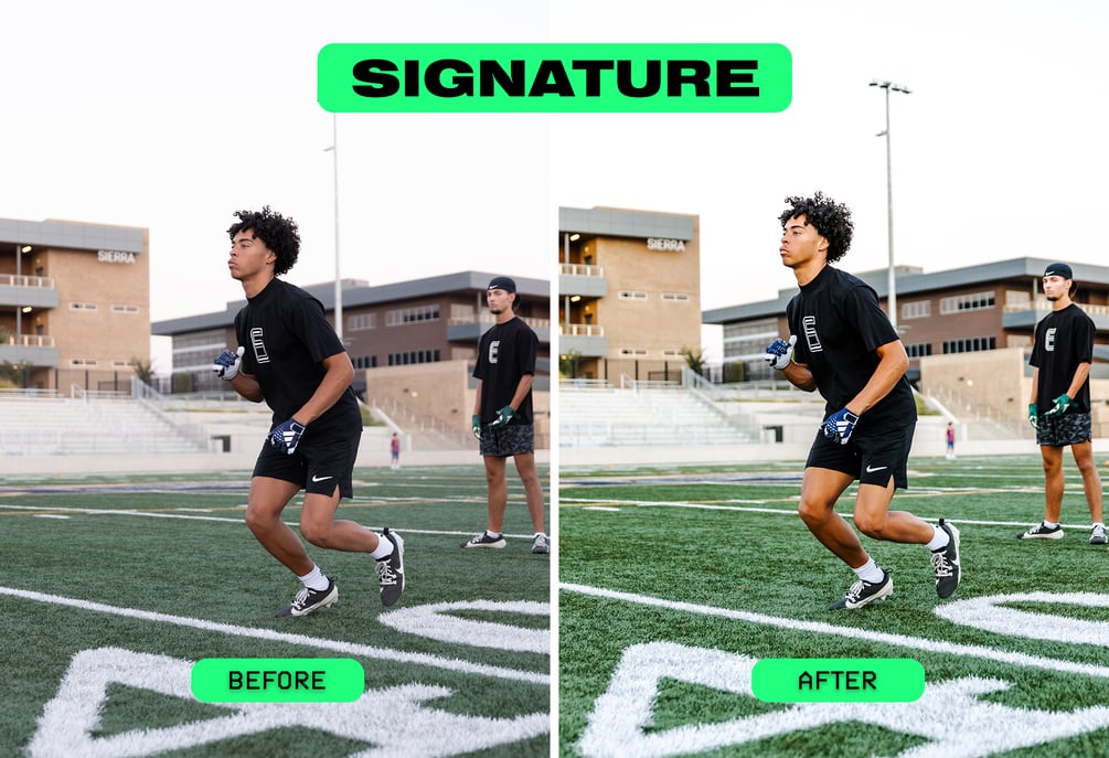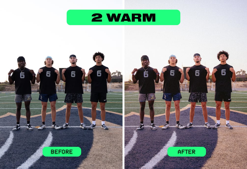 “2 WARM” + “FIT PICS” + “COOL” + “FLASH FILM” + “SUNNY” + “WARM” are among the presets I use daily to edit stunning images in Lightroom. They all serve the same purpose: to achieve the “Film Look” that’s highly desired in sports photography for that grungy, pregame vibe. You’ll find these styles throughout my Instagram and TikTok.