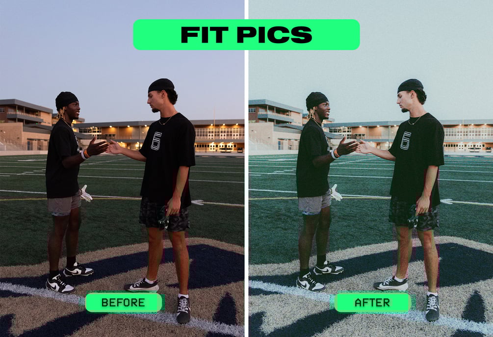 “2 WARM” + “FIT PICS” + “COOL” + “FLASH FILM” + “SUNNY” + “WARM” are among the presets I use daily to edit stunning images in Lightroom. They all serve the same purpose: to achieve the “Film Look” that’s highly desired in sports photography for that grungy, pregame vibe. You’ll find these styles throughout my Instagram and TikTok.